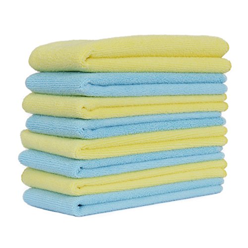 Amazon Brand – Solimo 8 Piece Microfibre Cleaning Cloth (40 cm X 40 cm, 350 GSM, Yellow and Blue)
