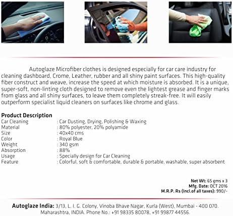 Autoglaze Microfiber garments is designed particularly for automobile care business for cleansing dashboard, Crome, Leather, rubber and all shiny paint surfaces. This excessive-high quality fiber assemble and weave, improve the velocity at which moisture is absorbed. It is a singular, tremendous-mushy, non-linting material designed to take away even the lightest grease and finger marks from glass and all shiny surfaces, to depart them utterly streak-free. It will simply outperform specialist liquid cleaners on surfaces like chrome and glass.