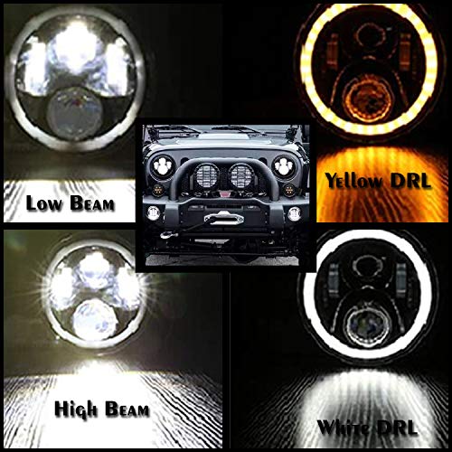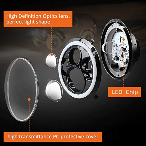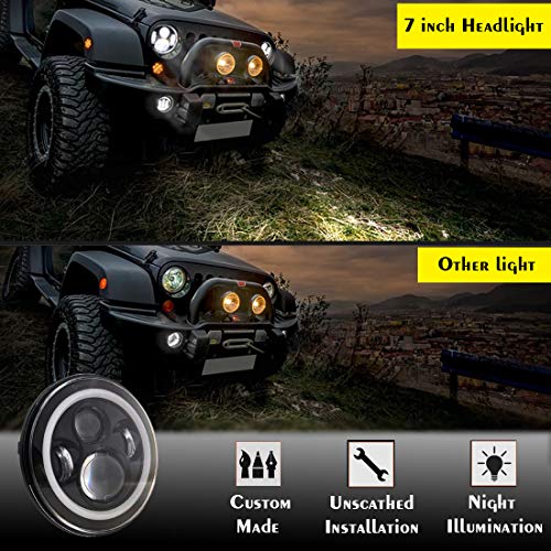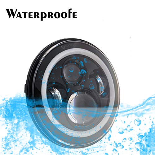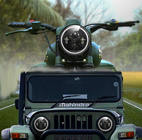AutoSun 7 Inch Round LED Headlights Halo Angle Eyes + Signal for Royal Enfield Royal Enfield Classic 350/ 500CC (Full Ring) 6 Month Warranty