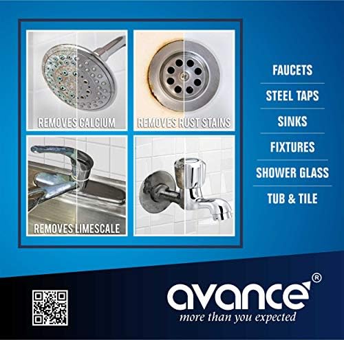 Avance limescale removes powerful limescale stain (examined on most typical toilet faucets and bathe equipment) Cleans cleaning soap scum and different toilet dust Enduring shine Safe on your SS faucets and bathe equipment Ideal for normal utilization in your toilet.