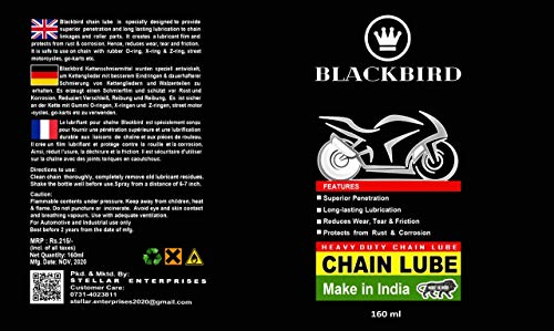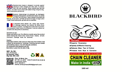 BLACKBIRD CHAIN CLEANER – prefered for use with chain brush to take away all grime , residue and globules of greases developed. Makes the chain look new and prolongs life.