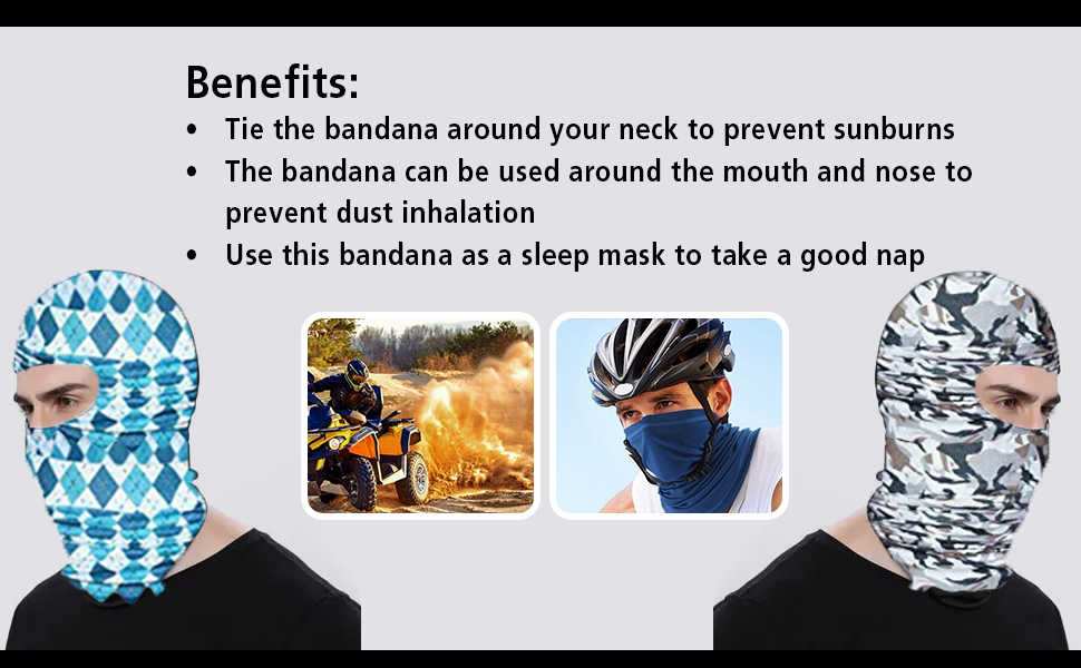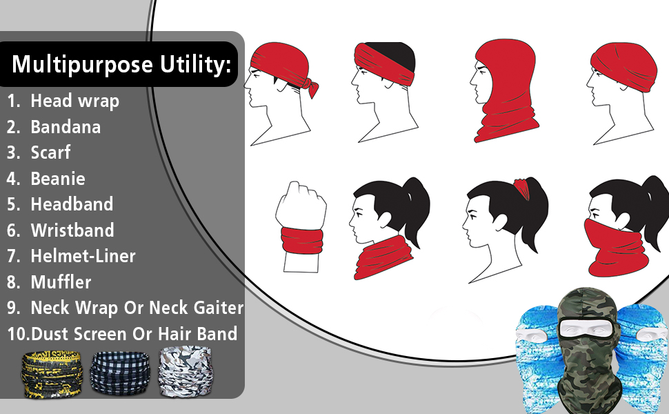 Use these as headband, bandana, wristband, hat, balaclava, headwrap, neck hotter. The headband is multifunctional, it may be used as 12+ methods to your adventures and every day life