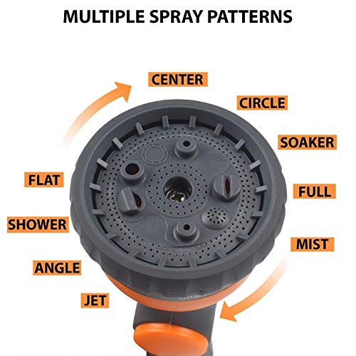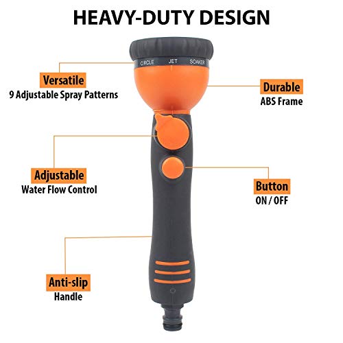 LABOR-SAVING DESIGN: This backyard nozzle includes a button on the prime of the deal with that maintain the water stays on with out you having to use any strain. Press the button twice to close the water circulate