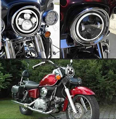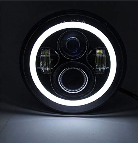 JT Auto 7 Inch 4 LED Headlight with Dual DRL Color Suitable for Royal Enfield (White and Black)