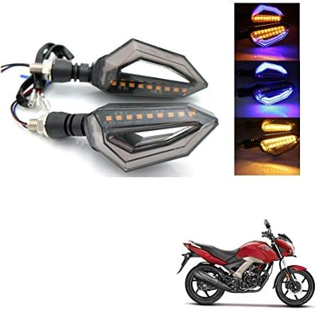 All Bike Compatibility: Package: 4 pcs Indicators in 1 field Easy set up skilled set up solely Blue daylight amber route indicator Direction indicator daytime working lights Motorcycles flip indicators 12 V, 12 LED tremendous vivid appropriate for bikes & scooters . 2 coloured lights: vivid amber blue gentle with a blade formed design nice for flip indicators and indicator lights. Waterproof Durable and plastic materials make it immune to water injury Easy set up with direct bolting with three wire connection three wire design, consists of each wires for mounting on all surfaces.