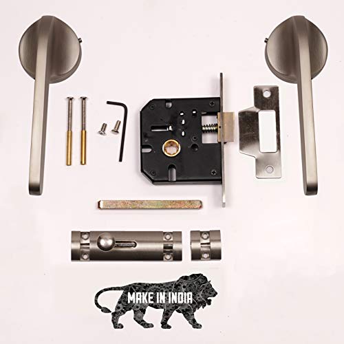 LAPO Rose Mortise Door Handle Set for Bathroom and Balcony Door Lock with Brass Baby Latch Lock with Brass Latch/Zinc Alloy Weather Proof-Matt Finish(Ro-127)