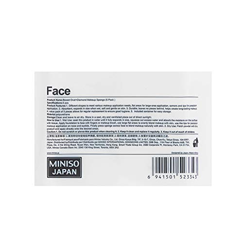 MINISO Random Colour Boxed Oval and Diamond Makeup Sponge Flawless Coverage Sponges for Liquid Foundation Creams and Powders (5 Pack)