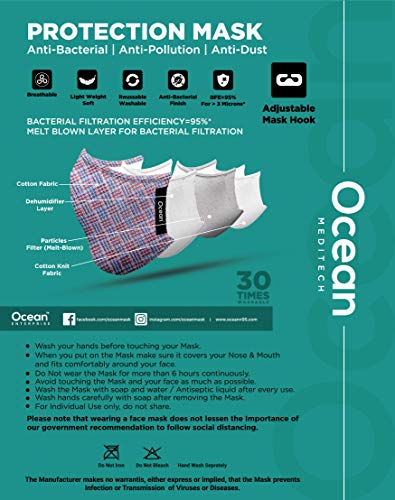 Ocean N95 Cloth Mask for spectacle users Anti Fog Mask for Men & Women & Mask for Kids Girls & Kids Boys N95 Mask for Dust & Pollution protection Washable and Reusable N95 cotton Mask – Pack of 3 (M, Black Grey White)