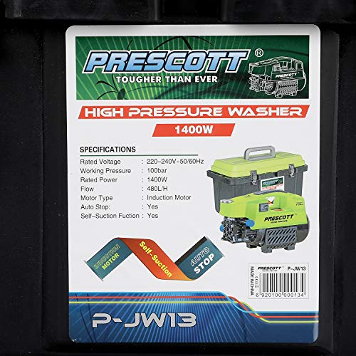 Prescott p-jw13+ excessive stress washer (induction motor), premium high quality product with copper induction motor, for prime stress and good vary, silent motor. Gives 100 bar stress, compact and simple to hold, supplied with pvc carry case for washer and all its equipment. Suck water from bucket in addition to from faucet. Comes with overload safety valve for security.