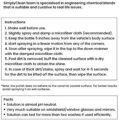 Simply Clean’s waterless wash and polish is engineered to degrease and take away filth off the floor and push the polish particles into nano areas on painted surfaces reflecting gentle as nicely lubricate filth motion to keep away from scratches whereas wiping.