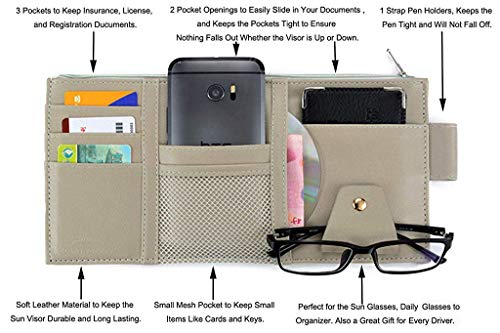STHIRA® PU Leather Multi-Function Car Space Sun Visor Organizer Hanging Phone Storage Pouch Holde (Grey)