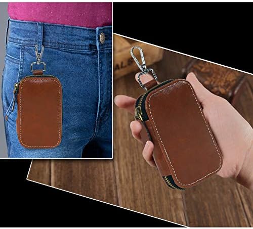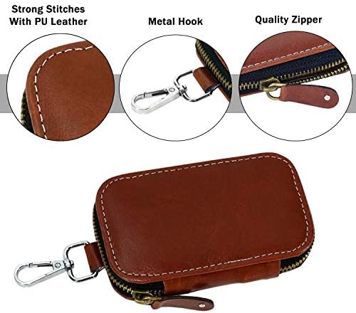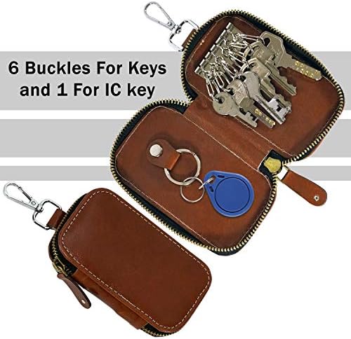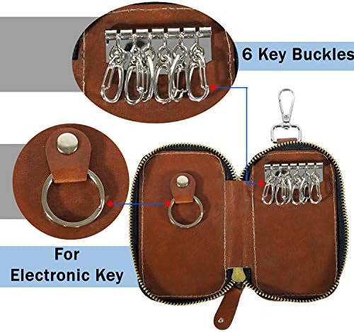 Storite PU Leather Key Case Pouch Wallet Keychain Key Holder Ring with 6 Hooks Zipper Closure Brown (12.5 x 7.5 cm)