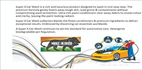 Super X Car Wash is a wealthy and splendid product designed to clean in a single simple step. The premium method gently foams away robust dust, street grime & contaminants with out compromising wash safety. Ultra-rich paint conditioners clear away particles to disclose shade and readability, leaving the paint wanting radiant. Super X Car Wash assortment blends the best conditioners & premium components to ship distinctive outcomes. Embraced by discerning automotive necessities worldwide. A Super X Car Wash continues to set the usual for automotive care. Detergents biodegradable per Regulation. DIRECTIONS: For greatest outcomes, make sure the automotive is cool to the contact and in shade. Add 70ml of Super X Car Wash to in clear bucket, combine it nicely and wash your automotive. Immediately wipe off the remaining water with a 100% cotton terry towel to stop water spots.