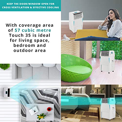 Symphony Touch 35 Personal Air Cooler 35-litres with Remote, Digital Touchscreen, Voice Assist, Multistage Air Purification, Mosquito Repellent, Removable Tank (White), Remote batteries not included