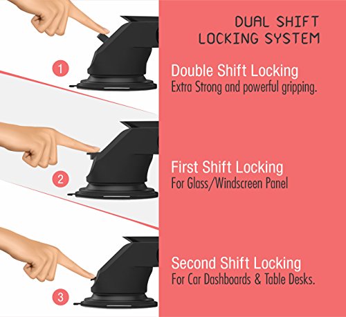 Dual shift locking for highly effective gripping on dashboard or windshield