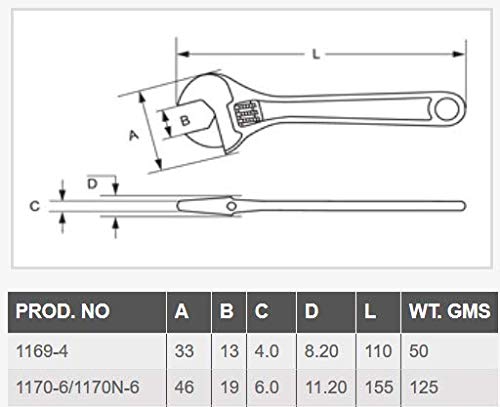 The merchandise weighs 127 grams. Has acquired a “jaw” of adjustable width, permitting it for use with totally different sizes of fastener head (nut, bolt, and so on.) somewhat than only one fastener, as with a traditional fastened spanner. Has a completely polished chrome plated chosen alloy which provides metal totally hardened and tempered easy screw adjustment.
