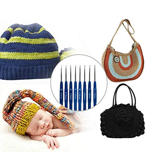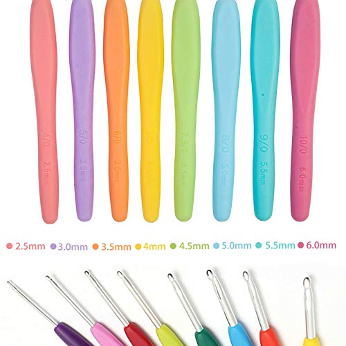 The Blue crochet hook measurement:0.6mm/0.75mm/0.9mm/1.1mm/ 1.2mm/1.5mm/1.6mm/1.7mm;The Colorful Crochet hook measurement: 2.5mm/3mm/3.5mm/4.0mm/4.5mm/5mm/5.5mm/6mm.They work nice for totally different weighted yarn.